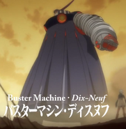 Dix-Neuf (ディスヌフ) is Buster Machine number 19, piloted by Casio Takashiro and later Lal'c Melk Mark. It's the oldest buster machine still in use (supposedly a few thousand years old) by The Fraternity in Top o Nerae! 2: Diebuster.